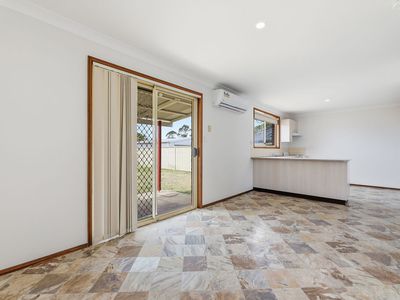 Inside, the home has cozy carpet in the high-traffic areas, with easy-to-clean vinyl flooring in the kitchen and dining room. It’s freshly painted in neutral tones to keep things bright and fresh. The kitchen comes with electric appliances and lots of storage for all your cooking essentials. The family bathroom has a shower and a separate bath for relaxing baths or quick showers. Comfort is key with split system air conditioning, and high-speed NBN internet is ready to go.