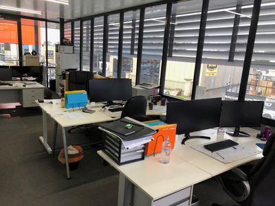 In a modern building above a showroom/warehouse, there is an 'open plan' area of approx 35m2 with a large window wall for natural light and which is carpeted and has split-system airconditioning. Accessed from the main area is a sunny 'deck/balcony' of approx 12m2, ideal for casual meetings or coffee breaks. Private male & female facilities are provided and a new kitchenette will shortly be installed. Electricity is included and a seperate NBN connection is available.